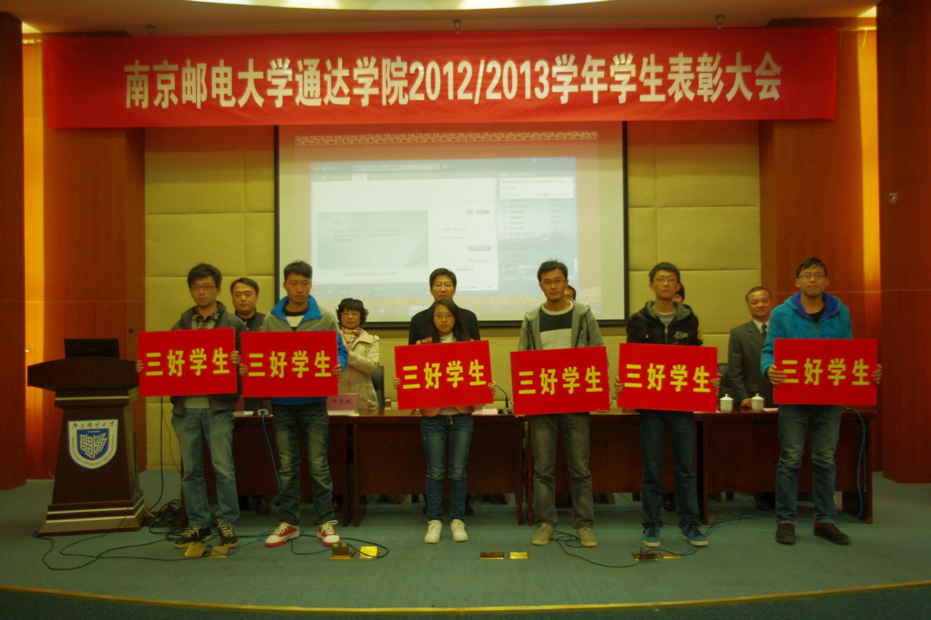 大会在奏唱国歌声中拉开序幕。首先,院党委季小健书记宣读了《关于表彰2012/2013学年省级三好学生、优秀学生干部及先进班集体的决定》,并为他们颁发了奖项。接着,周西峰副院长、邓艳华副书记、许明处长、卞文献处长分别宣读了关于表彰2012/2013学年院级优秀学生、奖学金获得者、先进班级以及“示范宿舍”、“文明宿舍”的决定,并为他们颁发了奖项。本学年,kaiyun官网南京校区共评选出先进班级19个,“示范宿舍”、“文明宿舍”41间,共有406名学生荣获“三好学生标兵”、“三好学生”、“优秀学生干部”称号,1941名学生获一、二、三等奖学金和“技能成才奖”、“学习进步奖”、“社会实践优秀奖”等单项奖。