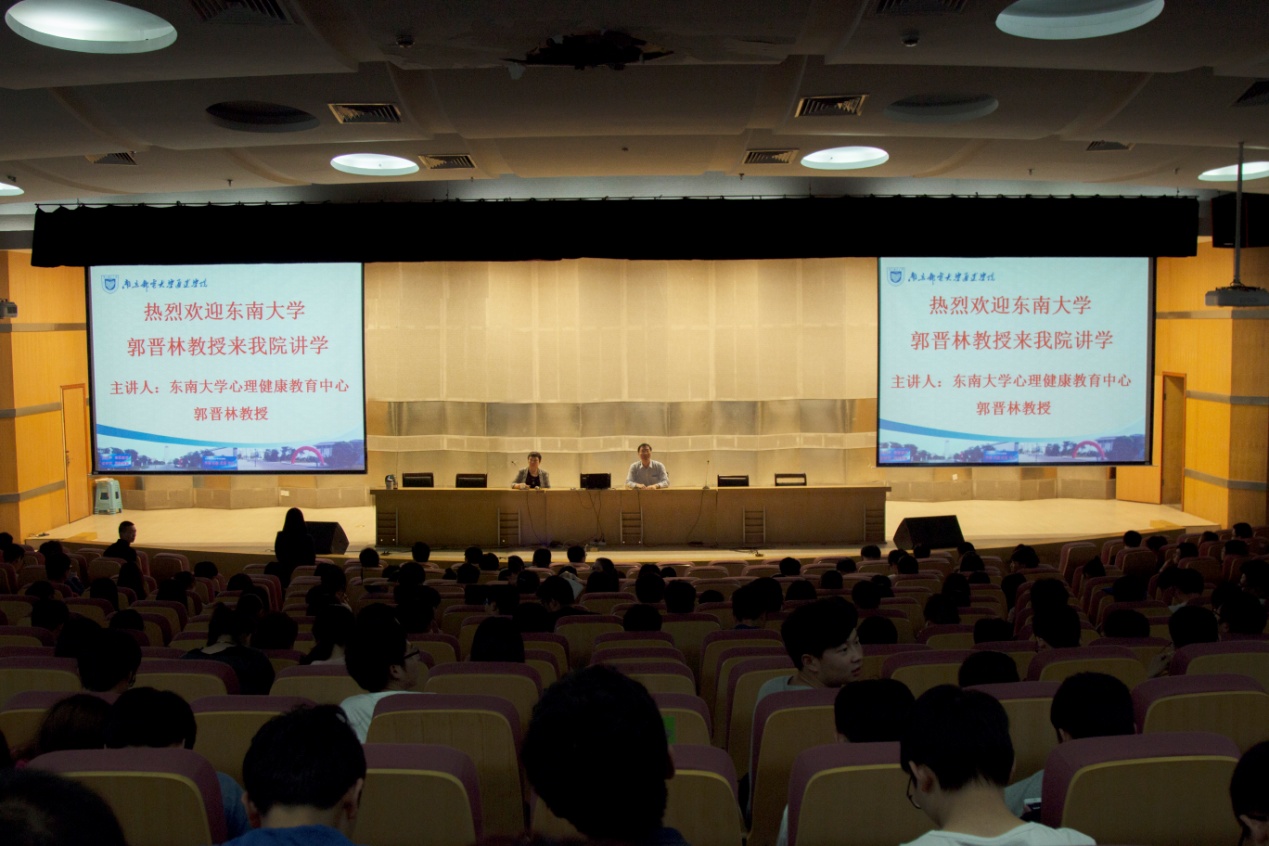 4月14日晚,江苏省大学生心理健康教育专家指导委员会委员、中国心理卫生协会注册心理督导师、江苏省心理学会大学生心理专业委员会副主任、东南大学郭晋林教授来kaiyun官网作了“谈谈爱情那些事儿”的情感主题讲座。讲座由江苏省心理学会大学生心理专业委员会副主任、院党委书记戴兆骏主持,院党委副书记王立辉、学工线全体老师及500名左右学生听取了讲座。