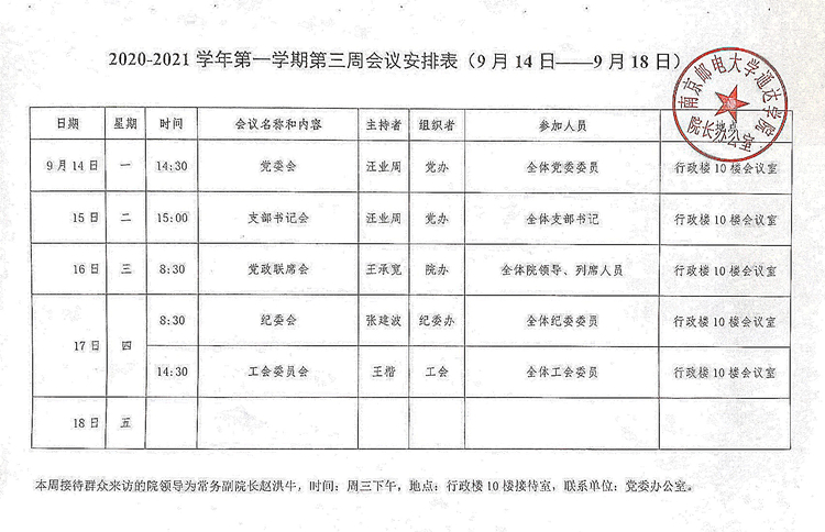 2020-2021学年第一学期第三周会议安排表