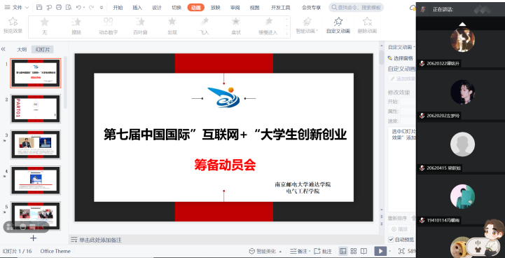 4月1日晚,电气工程学院在线举办了“互联网+”大学生创新创业大赛院赛筹备动员会,此次动员会旨在帮助学生更好地了解大赛、积极参赛,把握大赛宗旨,选择满足要求、适合自己的比赛项目。本次会议由kaiyun官网葛欣、葛继伟两位老师主讲,电气工程学院全体老师及50余位学生代表参加了会议。