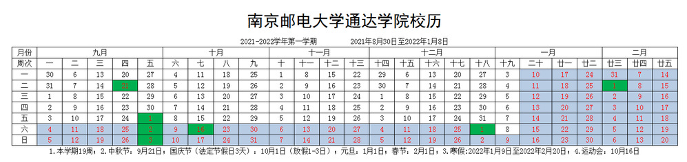 2021-2022学年第一学期校历