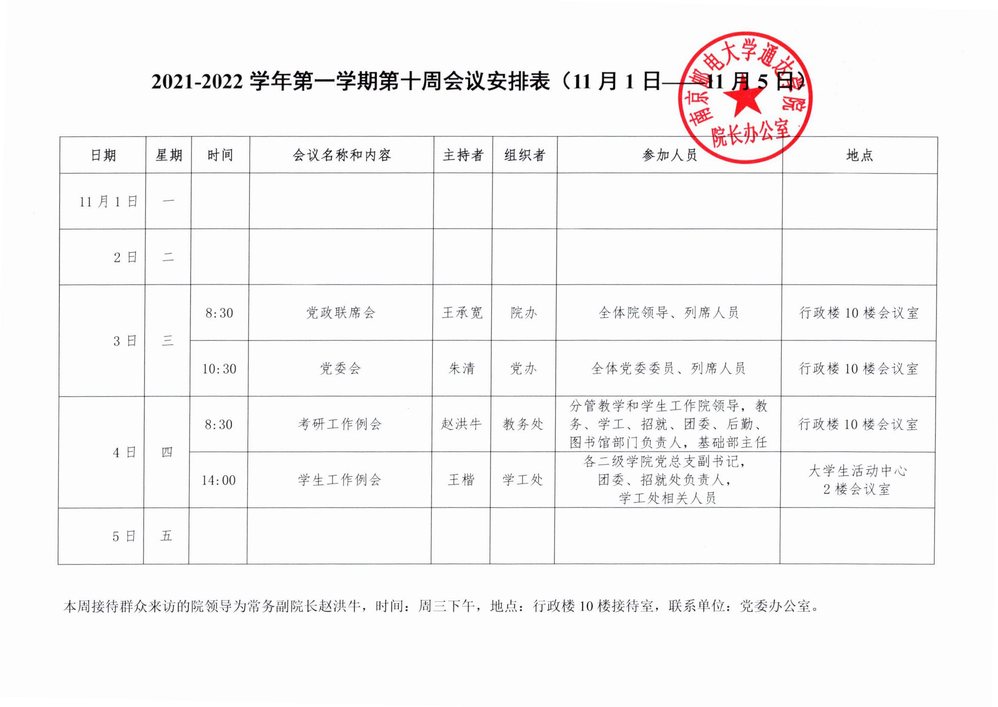 2021-2022学年第一学期第十周会议安排表