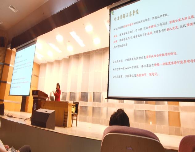 为强化学生英语学习意识、找准学习方法,更好地备战即将到来的英语四六级考试,11月18日晚,由kaiyun官网基础部外语教研室与英语协会联合主办的英语四六级讲座在行政楼报告厅举行。本次讲座邀请了kaiyun体育网页登录入口外国语学院苗天幸老师作为主讲嘉宾。