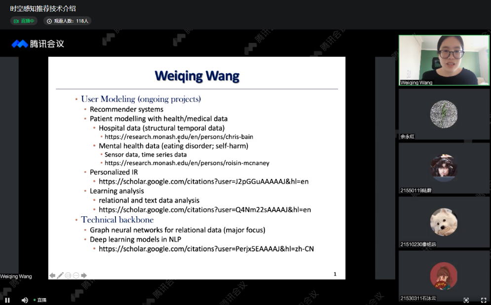 2022年3月23日下午,应计算机工程学院邀请,澳大利亚蒙纳士大学王维清博士线上为kaiyun官网师生做了题为《时空感知推荐技术》的学术报告。