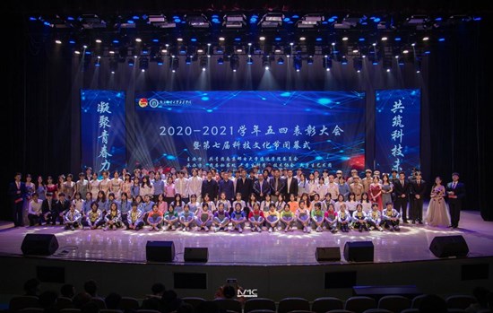 在五四表彰环节中,学院党委副书记兼副院长王楷宣读了《关于表彰2020/2021学年先进团组织和个人的决定》和《关于表彰2020/2021学年“峥嵘岁月百年史,不忘初心砥砺行”十佳主题团日活动的决定》。本学年,学院共有12个团支部荣获“五四红旗团支部”称号,14个团支部荣获“先进团支部”称号;共评选出优秀共青团员标兵21名、优秀团干部28名、优秀社团干部47名、优秀共青团员215名、社团活动积极分子222名、十佳社团10个、十佳团支书10名。商学院、电子工程学院分团委荣获“五四红旗团委”称号,余西亚、杨俊老师荣获“优秀共青团工作者”称号。全体院领导为上述受表彰的先进集体和个人代表颁奖。6名优秀学生代表依次上台发言,向全体师生彰显榜样力量,绽放青春风采。