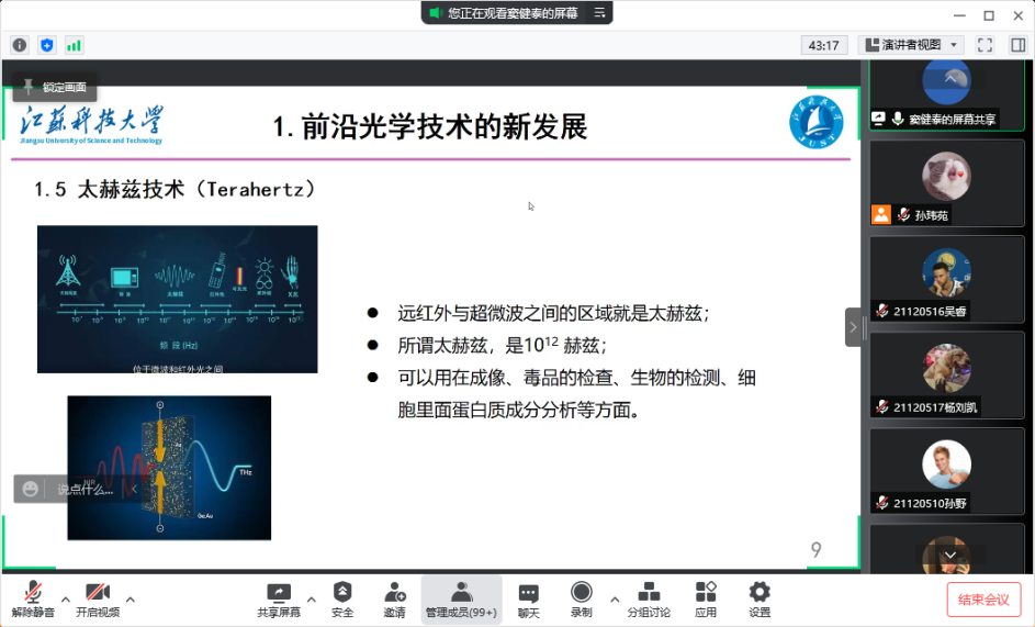 最后,窦建泰老师还就江苏科技大学理学院的研究生专业设置、师资力量、培养方向等情况进行了简单介绍,并欢迎我校同学报考江苏科技大学。整场报告学术性强、内容充实、深入浅出,现场气氛热烈。