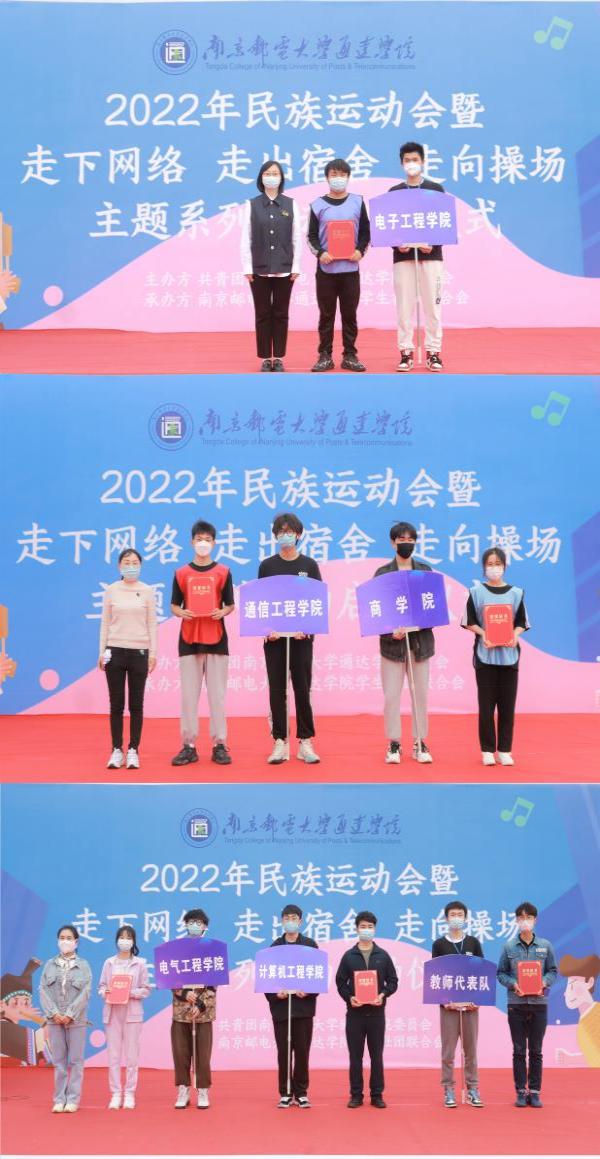 启动仪式结束后,民族运动会、学院对抗赛、趣味小游戏积分赛共22个比赛项目在多个场地同时开展。经过激烈又欢乐的比拼,最终电子工程学院获得民族运动会一等奖,通信工程学院、商学院获得二等奖,计算机工程学院、电气工程学院以及教职工队伍获得三等奖;商学院获得学院对抗赛一等奖,通信工程学院获得二等奖,计算机工程学院、电气工程学院、电子工程学院获得三等奖。