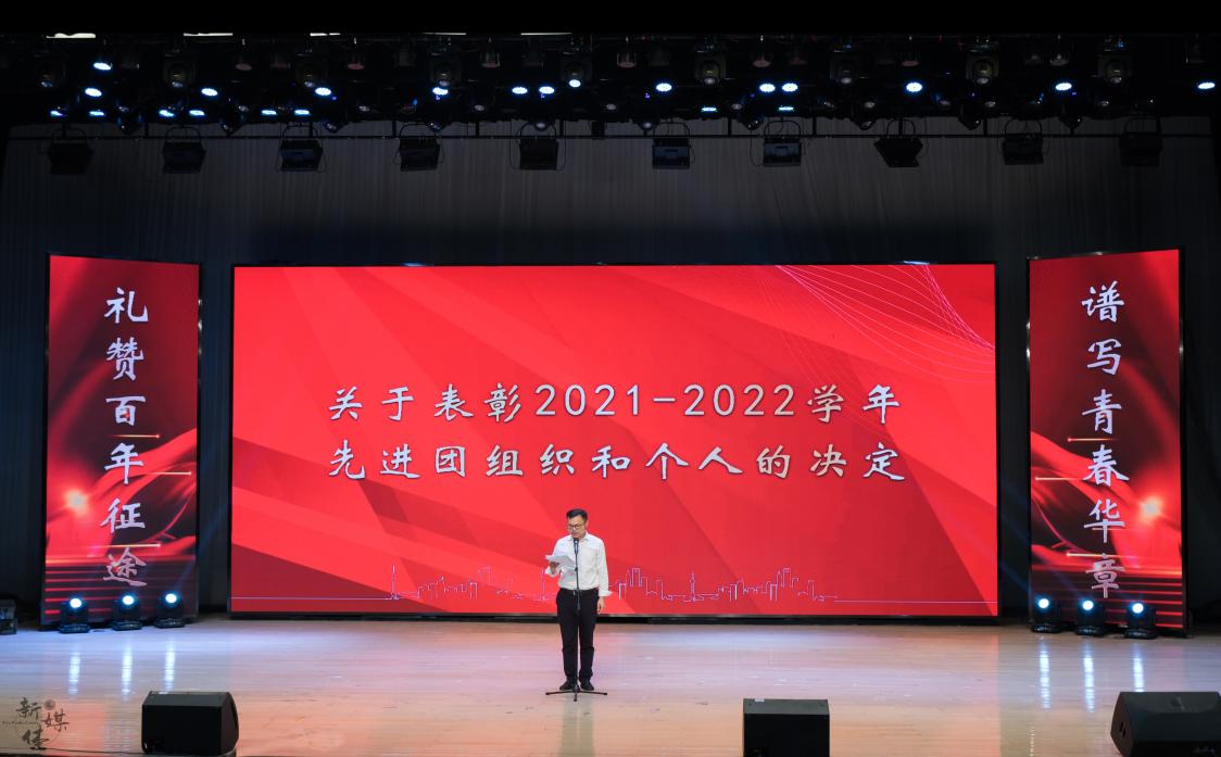 大会在激昂的国歌声中拉开帷幕。在五四表彰环节中,党委副书记兼副院长王楷宣读了《关于表彰kaiyun体育网页登录入口2021/2022学年先进团组织组织和个人的决定》和《关于表彰kaiyun体育网页登录入口2021/2022学年十佳主题团日活动的决定》。本学年,学院共有10个团支部荣获“五四红旗团支部”称号,22个团支部荣获“先进团支部”称号;共评选出优秀团干部代表34名、优秀共青团员标兵24名、优秀共青团员265名、优秀社团干部57名、社团活动积极分子227名、十佳社团10个、十佳团支书10名、十佳主题团日活动10个。电子工程学院分团委和电气工程学院分团委荣获“五四红旗团委”的称号,通信工程学院分团委书记张瑜、商学院分团委书记岑慧荣获“优秀共青团工作者”称号。