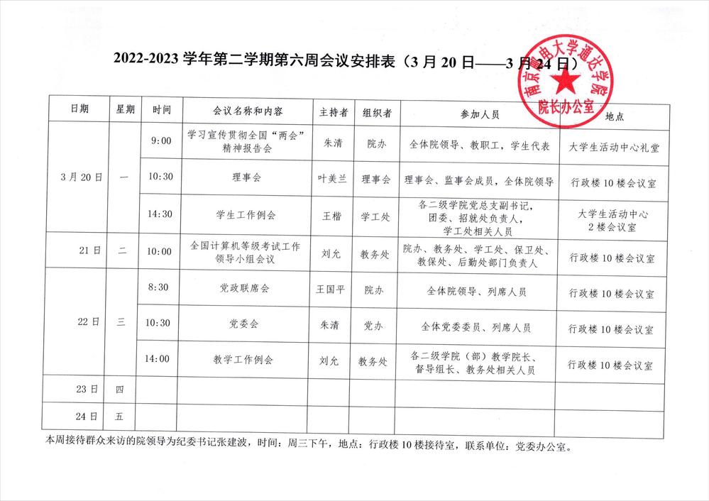2022-2023学年第二学期第六周会议安排表