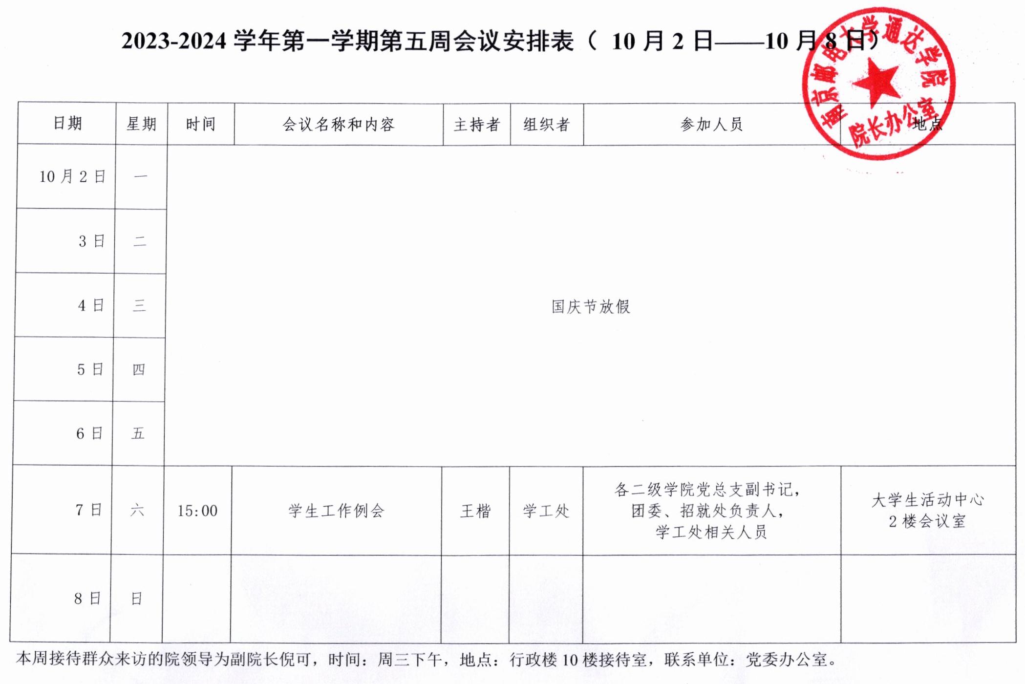 2023-2024学年第一学期第五周会议安排表
