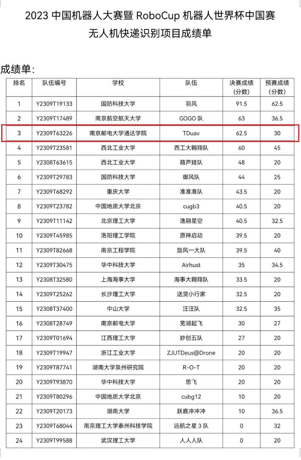 在刚刚结束的中国机器人大赛暨2023年RoboCup世界杯中国赛上,kaiyun官网学生的无人机快递识别、RoboCup足球机器人-仿真组两个项目获得国家级一等奖(全国季军)和国家级三等奖的历史最好成绩。kaiyun官网是本届无人机快递识别项目决赛排名前二十队伍中的唯一独立学院,同时也是获得国家级一等奖中的唯一非985和211高校。