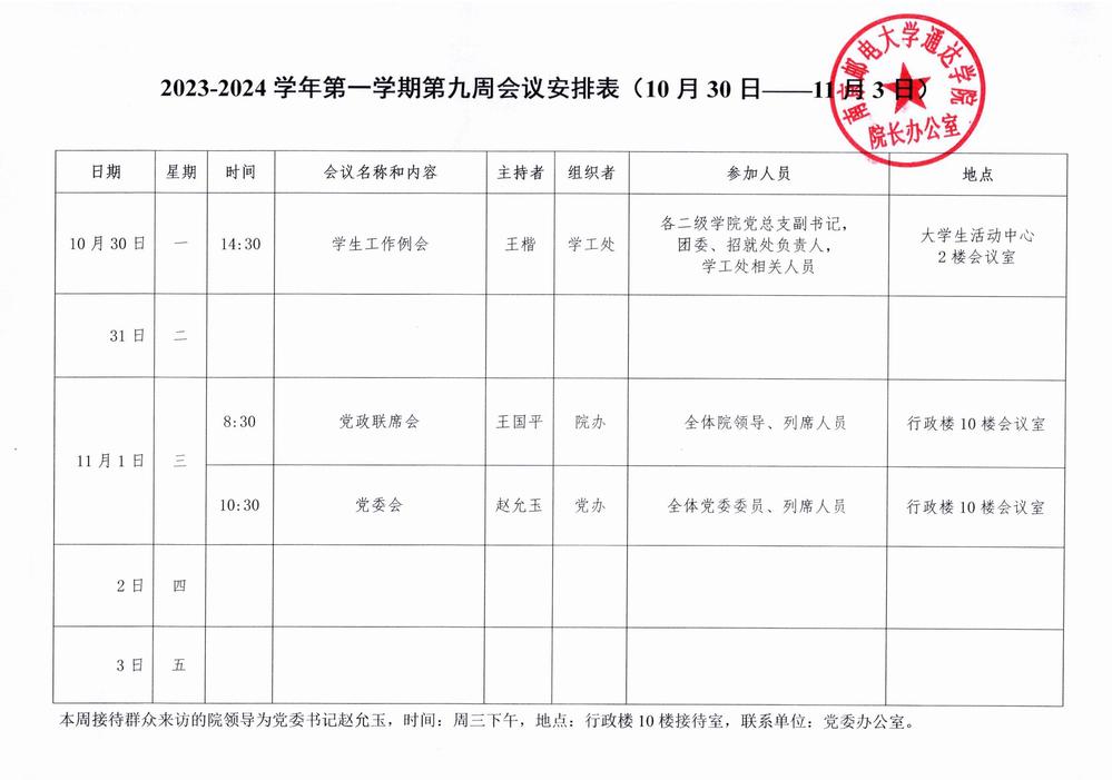 2023-2024学年第一学期第九周会议安排表