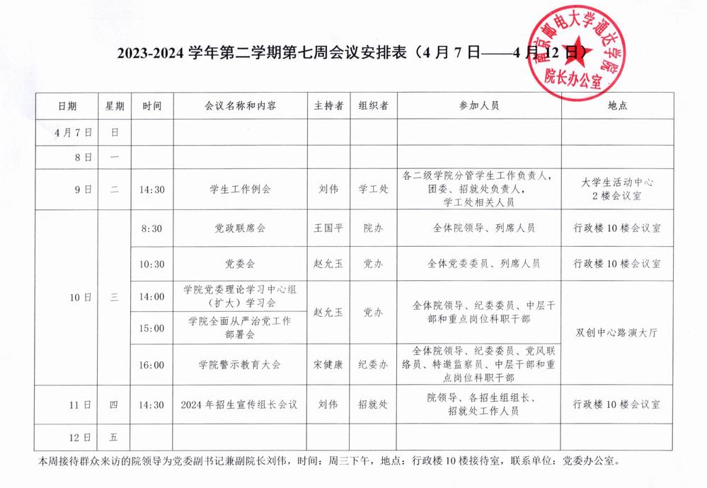 2023-2024学年第二学期第七周会议安排表