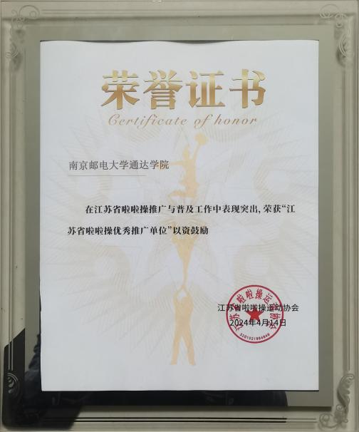 kaiyun官网被授予“江苏省啦啦操先进推广单位”