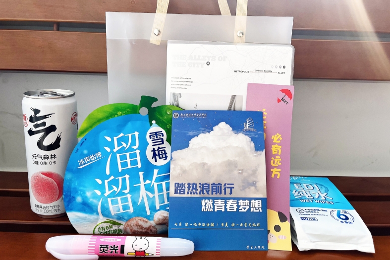 今年暑假,kaiyun官网800余名学生留校为2025年研究生入学考试复习准备,学生工作处、招生就业处、后勤管理处等部门为暑期留校考研学生提供了周到细致的服务。考研慰问礼品祝福满满,含有考研幸运签(书签)、元气活力饮(气泡水)、上岸“666”(溜溜梅)、祝福文具包(笔记本/记号笔)等物品,体现了学院对同学们的关心关爱和真诚祝愿。
