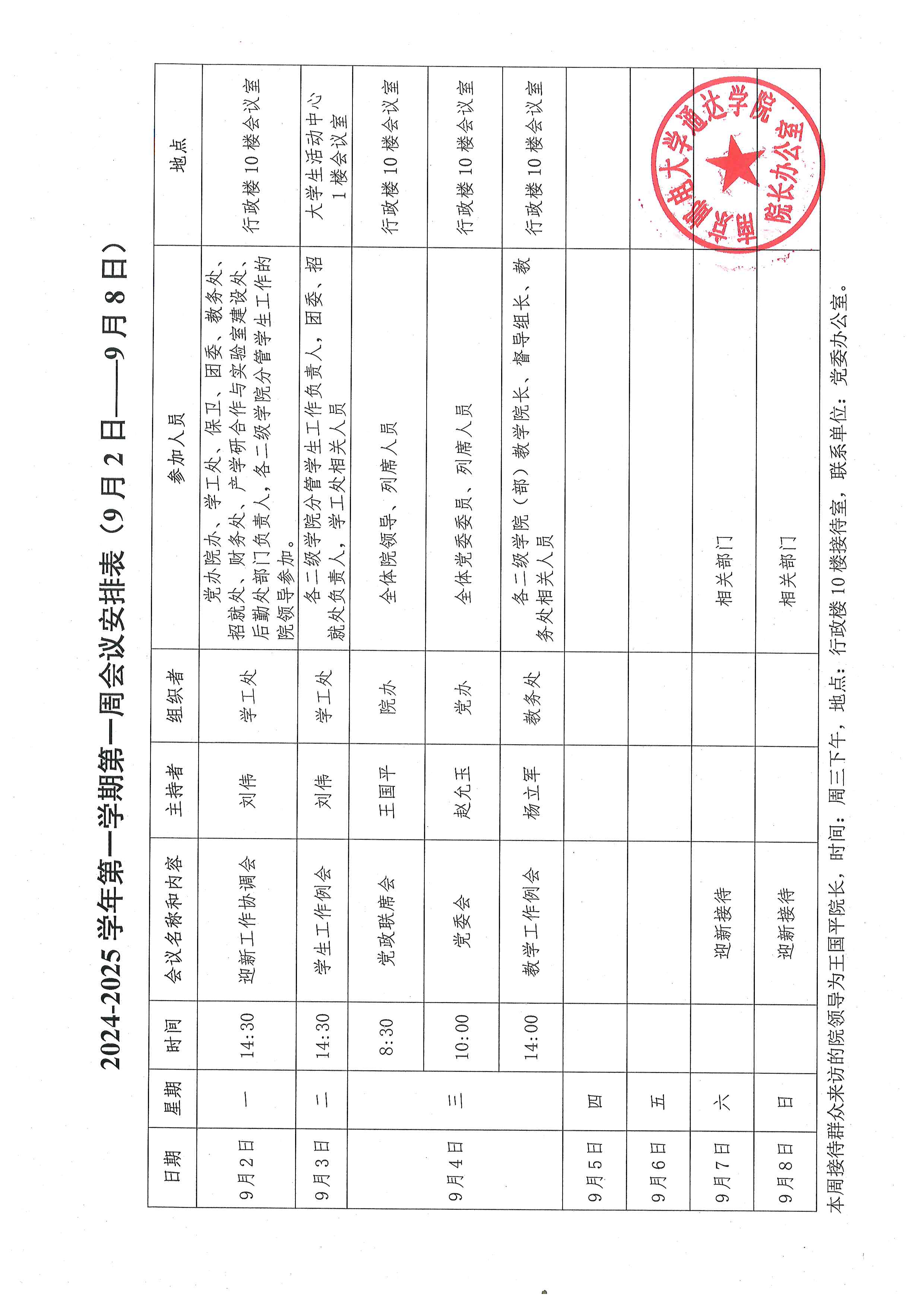 2024-2025学年第一学期第一周会议安排表