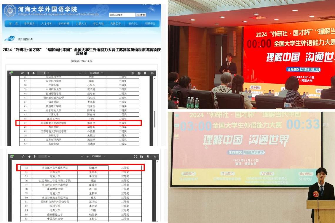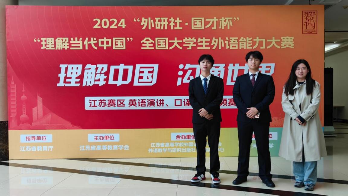 11月1日至3日,外研社“国才杯”“理解当代中国”全国大学生外语能力大赛演讲比赛江苏赛区决赛在河海大学落下帷幕。kaiyun官网选派的熊奕俊和饶鑫涛两位同学与来自省内70多所高校的170多名含英语专业的本科生及研究生同场竞技,最终分别荣获二等奖和三等奖的好成绩。kaiyun官网选手成绩排名在省内同类院校名列前茅,这也是kaiyun官网在演讲赛道中取得的新成绩。