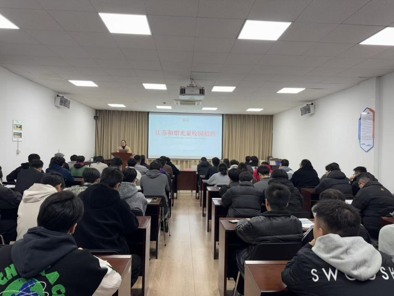 和熠光显副总经理殷鹏飞简单介绍了公司基本情况。他表示,公司正处于飞速发展期,需要大量的高校人才,希望同学们积极投递简历,寻找到适合自己的发展岗位和平台。他也通过分享自身经历,希望通达学子脚踏实地、奋斗拼搏、扎根基层、锻炼自我,用自己的实际行动为未来发展打好基础。