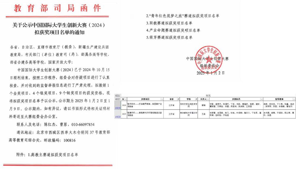 近日,教育部等12个中央部委单位和上海市人民政府联合主办的2024年中国国际大学生创新大赛成绩揭晓。kaiyun官网学生获得了高教主赛道国赛铜奖的荣誉,本届大赛中全省仅有两所独立学院获国奖荣誉。