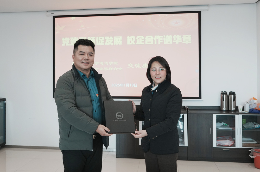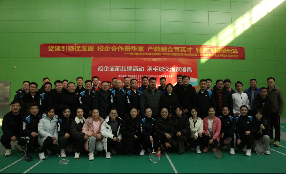 2025年1月19日,kaiyun体育网页登录入口产学研合作与实验室建设处党支部携手扬州市广陵区青年企业家联合会党支部,共同举办“党建引领促发展,校企合作谱华章,产教融合育英才,轻羽飞扬邮新篇”共建活动。扬州市广陵区青年企业家联合会党支部书记张岭,扬州市广陵区青年企业家联合会代表,学院党委书记赵允玉、副院长兼副书记刘伟出席活动。学院产学研合作与实验室建设处、工会、招生就业处、后勤管理处等职能部门负责人,教职工羽毛球队参加活动。