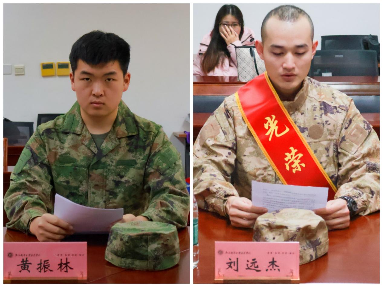 退伍复学学生代表黄振林、入伍新兵代表刘远杰发言