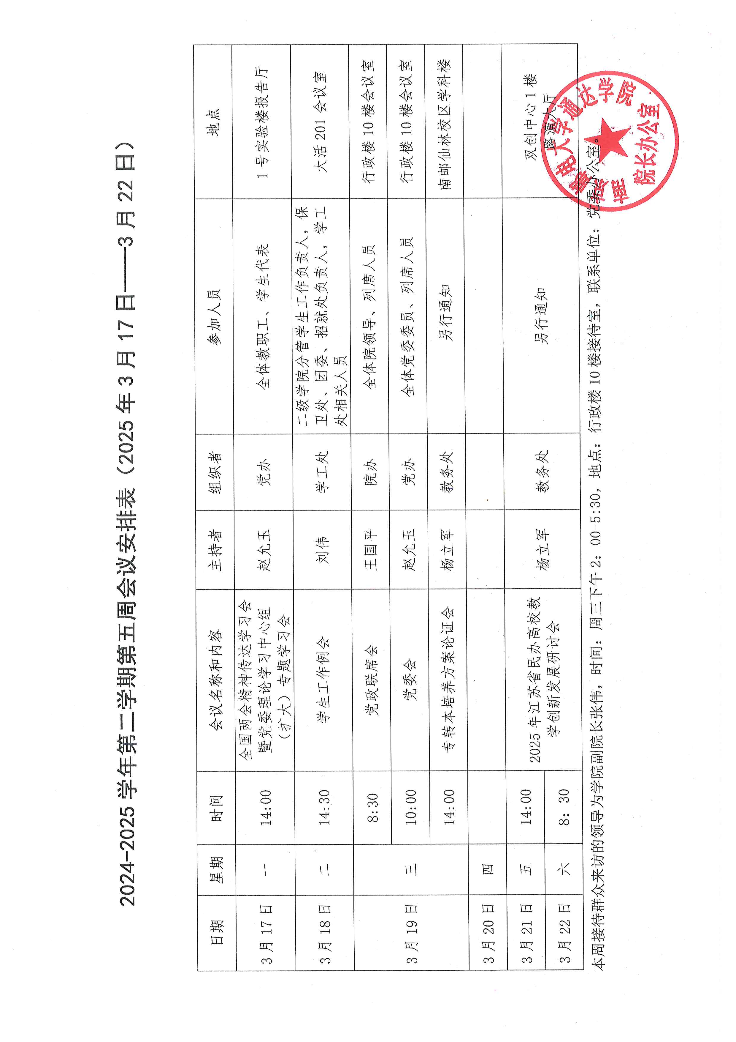 2024-2025学年第二学期第五周会议安排表