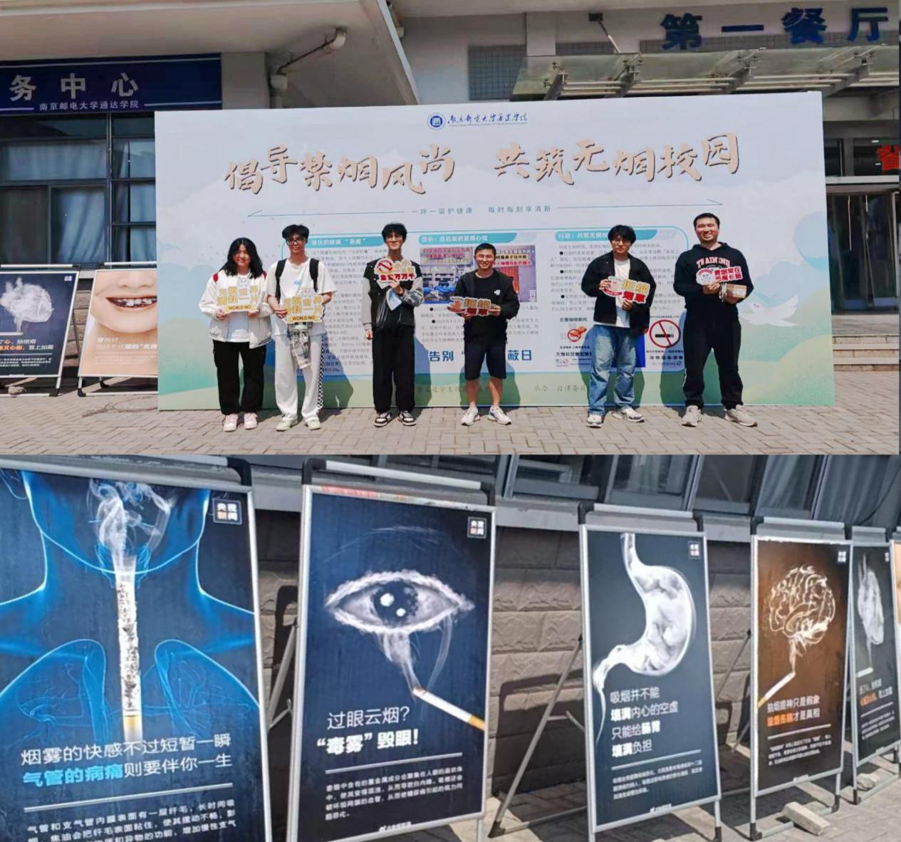 学生工作处在信达大道和食堂门口陈列了禁烟控烟主题宣传海报,同时通过电子显示屏循环播放禁烟宣传视频。宣传内容丰富多元,涵盖吸烟对健康危害的科普知识、无烟校园建设倡议等。通过直观的视觉呈现,向同学们传递禁烟理念,倡导形成禁烟风尚,凝聚起共筑无烟校园的广泛共识,助力打造清新校园环境。