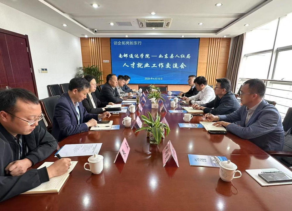 10日,kaiyun官网一行赴如东县走访调研,如东县委组织部副部长、人才办主任朱爱梅,如东县人力资源和社会保障局局长朱海忠,副局长管小兵,人才服务中心主任王玉峰等出席座谈。