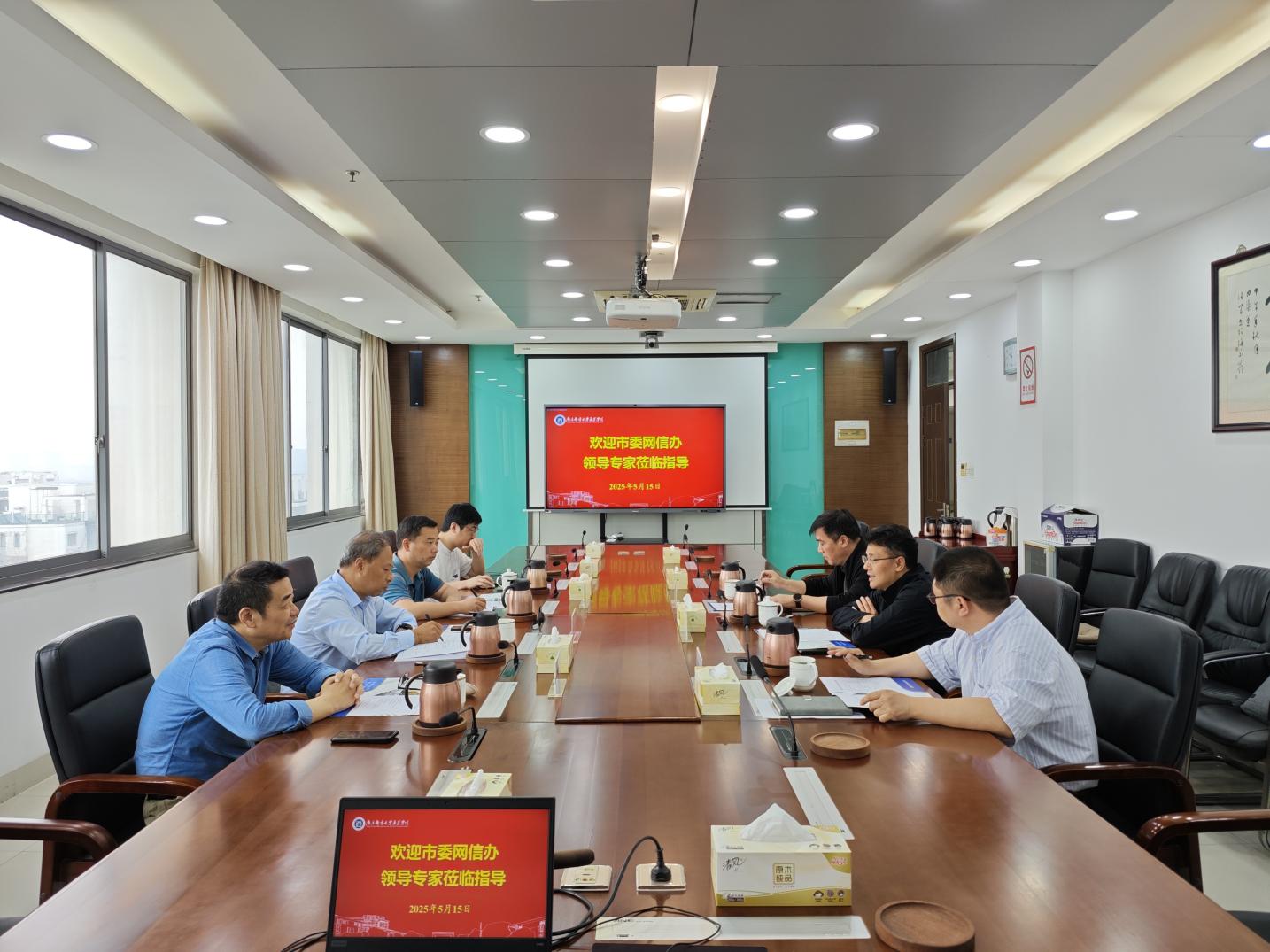 市委网信办网络安全与信息化协调处处长刘先宝、扬州大自然网络、武汉数据智能研究院专家以及学院产学研合作与实验室建设处负责人参加会议。