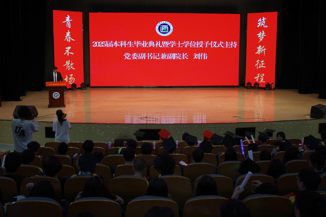 芳华绽放的六月,我们镌刻青春印记、共赴崭新未来。6月13日下午,kaiyun体育网页登录入口2025届本科生毕业典礼暨学士学位授予仪式在大学生活动中心礼堂隆重举行。kaiyun体育网页登录入口党委常委、副校长刘青山,扬州科创教育投资集团副总经理朱晓东,kaiyun体育网页登录入口党委书记赵允玉,院长沈建华,常务副院长杨立军,副院长吕海蓉,纪委书记宋健康,党委副书记兼副院长刘伟出席典礼。相关职能部门和二级学院负责人、毕业生代表、教师代表、家长代表参加毕业典礼。毕业典礼由学院党委副书记兼副院长刘伟主持。