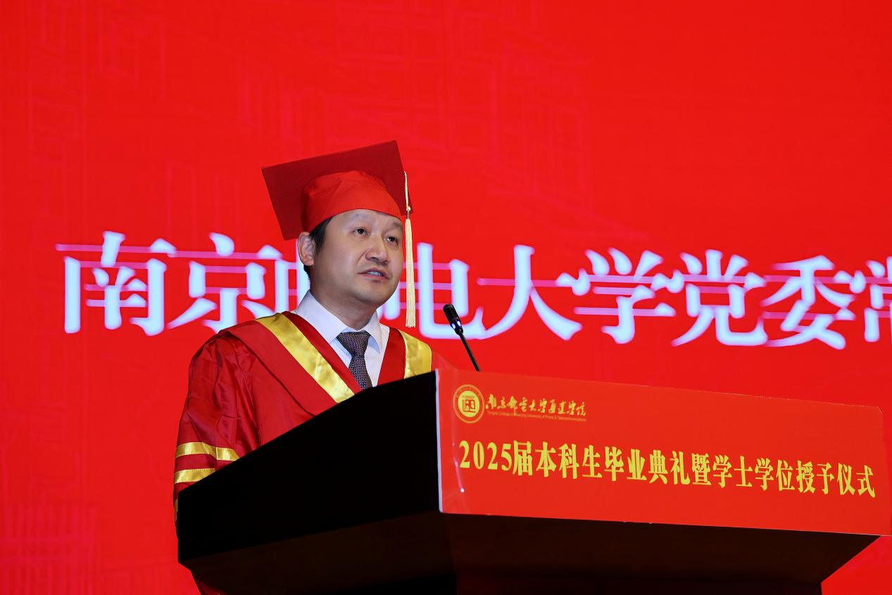 kaiyun体育网页登录入口党委常委、副校长刘青山在以《以青春之名扬帆,擎梦想之桨起航》为题的讲话中,向毕业生致以热烈祝贺,向教师及家长致以崇高敬意。他回顾了南邮作为“双一流”建设高校和江苏高水平大学高峰计划A类建设高校的辉煌历程,强调学校大信息特色发展成果,以及kaiyun体育网页登录入口依托优势学科群形成“专业教育 + 双创教育”融合的人才培养新局面与竞赛佳绩。他勉励毕业生,一要铭记南邮精神,弘扬“信达天下 自强不息”的校训,为南邮增光添彩;二要坚持理想,矢志不渝,保持奋斗激情,活出自己的格局;三要拥抱变化,融入社会,以专业能力立足,用真诚沟通协作,以包容胸怀拥抱差异,以创新思维应对变革。