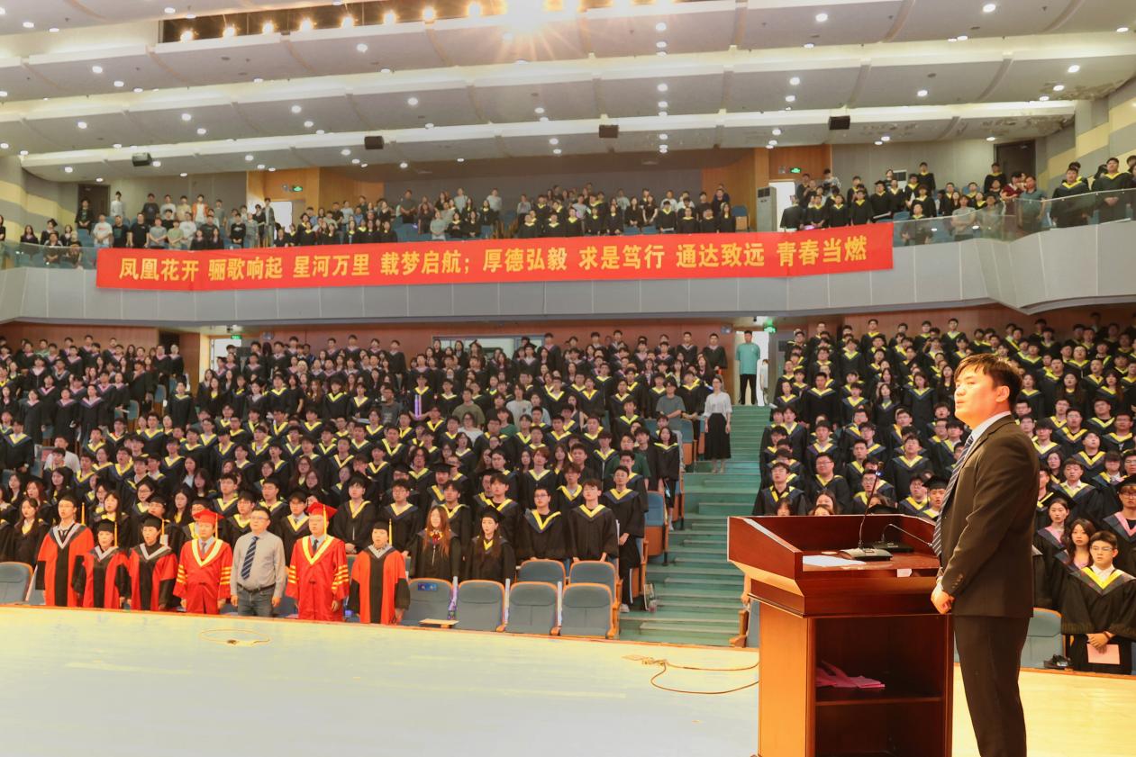 在庄严的国歌声中,毕业典礼正式拉开帷幕。