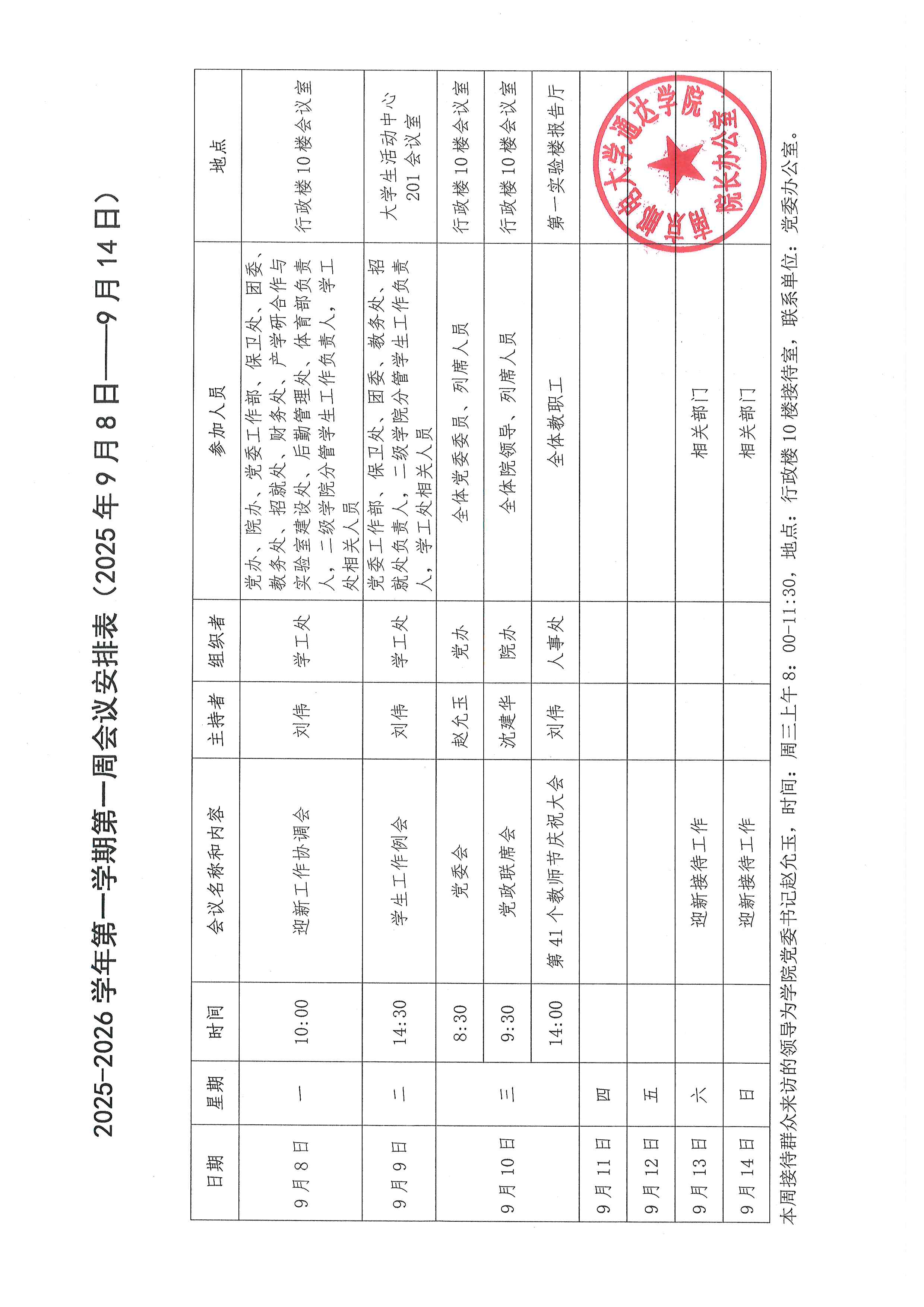 2025-2026学年第一学期第一周会议安排表