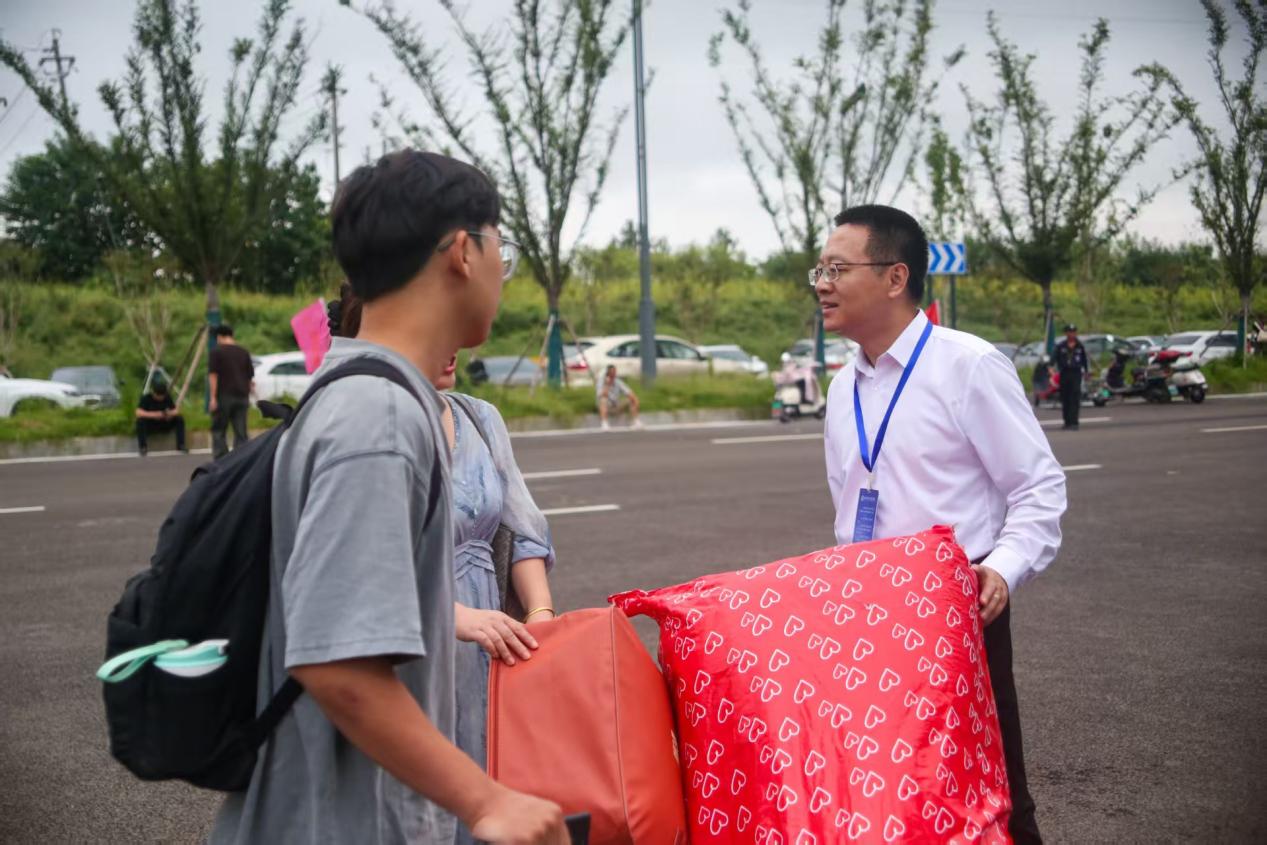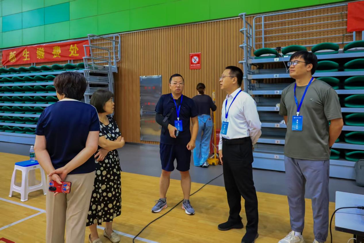 领导深入迎新一线,现场慰问暖人心。学院高度重视本次迎新工作,提前召开协调会议进行周密部署,确保各环节衔接顺畅、高效有序。迎新当天,学院领导一早来到报到现场,深入南门、体育馆、各二级学院接待点、学生宿舍等地,亲切慰问参与迎新工作的师生员工,详细了解新生报到情况,并对现场流程和服务保障提出细致要求。