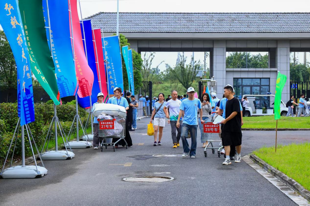 校内服务高效有序,志愿身影遍布校园。校园内,各项迎新工作也有条不紊地展开。志愿者们分工明确、配合默契,在校门、报到处、宿舍区等关键点位提供引导、答疑和行李搬运等服务。报到流程全面优化,资料审核、宿舍分配、校园卡发放等环节高效便捷,“一站式”服务极大提升了新生的入学体验。
