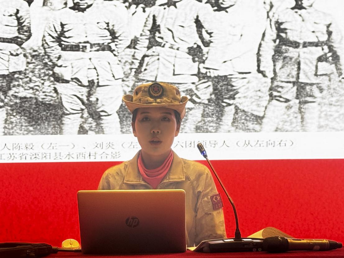 王淑仪在军训场上示范队列动作