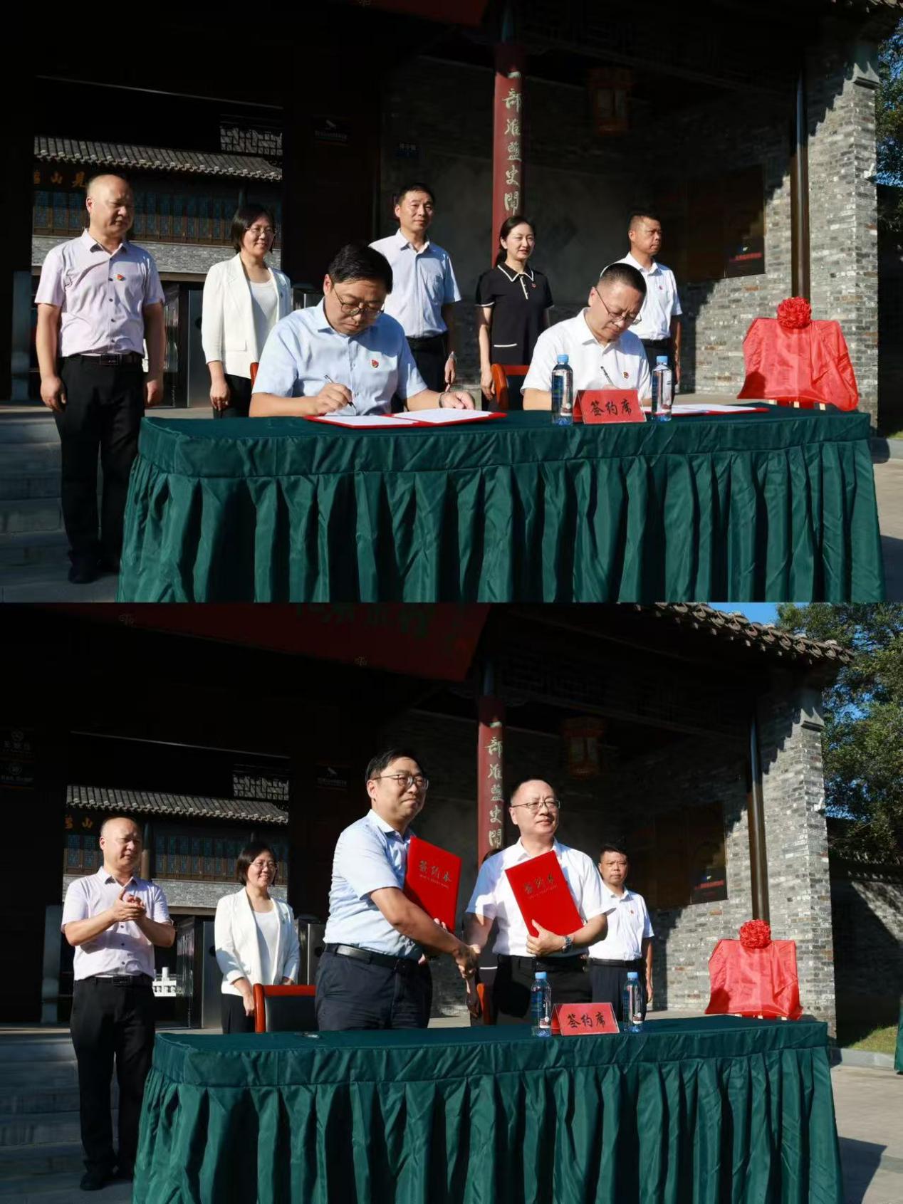 沈建华院长与郭猛书记共同签署《仪征市新城镇人民政府与kaiyun体育网页登录入口爱国主义教育基地、思想政治理论课实践教学基地共建协议书》,随后两人共同为基地揭牌,标志着校地合作迈入新阶段。