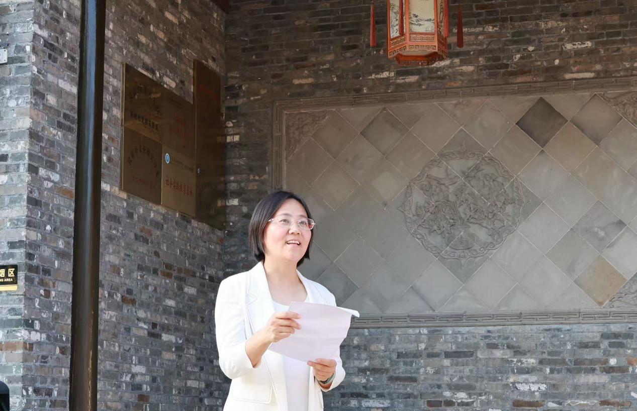 赵允玉书记代表学院讲话。她表示,十二圩不仅是千年盐运文化的“活载体”,其蕴含的商业管理智慧、物流调度经验、金融结算模式更是商学院专业教学的“活案例”,为学院破解思政教育难题提供了优质实践平台。她希望,学院以基地为纽带,推动“思政小课堂”“专业小课堂”与“社会大课堂”协同发力。