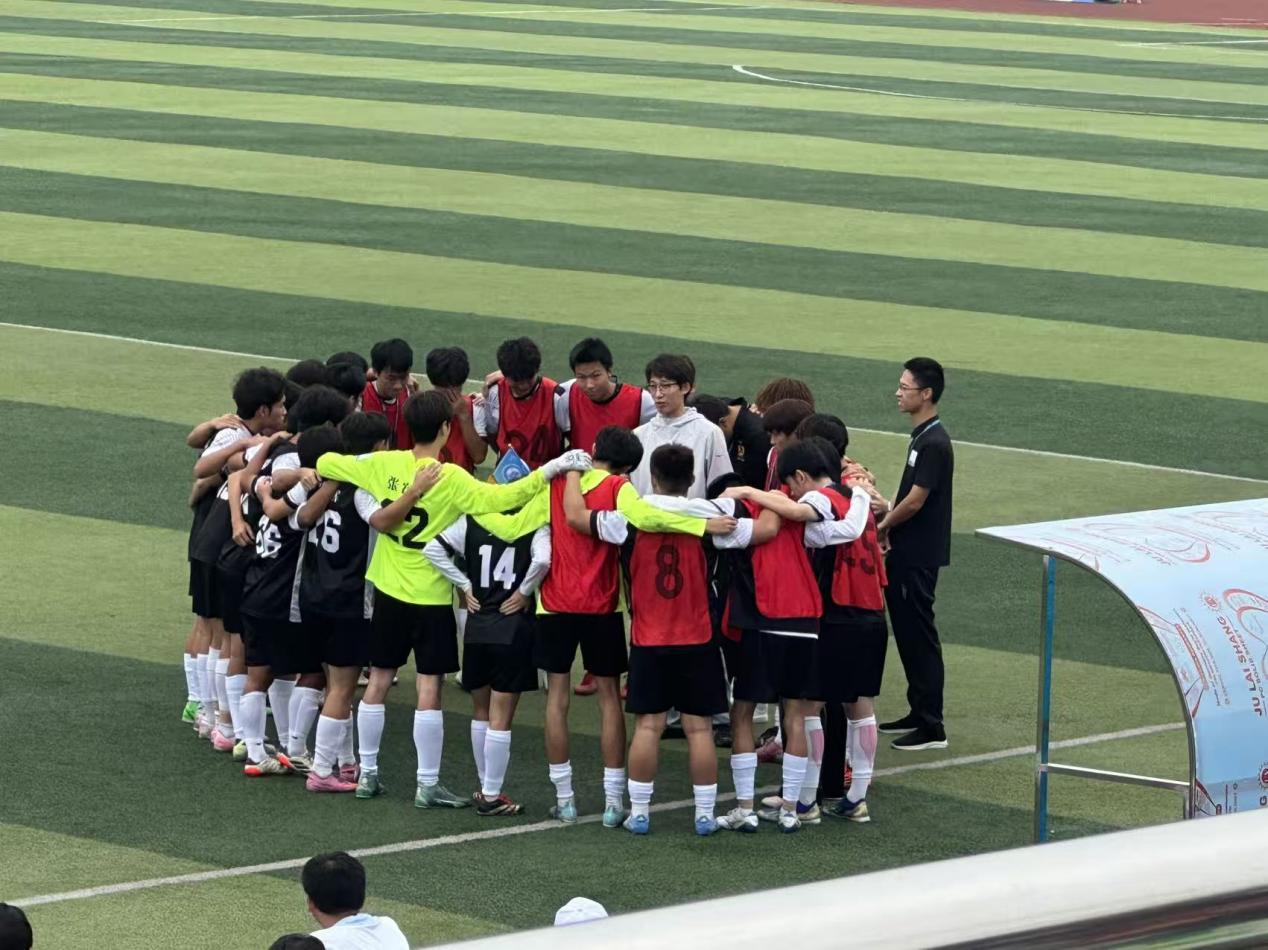 易边再战,对手加大进攻力度,派上输送苏超的预备球员增强火力,凭借中场优势频频发起边路冲击,一粒势大力沉的劲射使得我队守门员脱手破门,扳平比分。面对对手的强势反扑,教练陶曦鸣迅速作出战术布局调整,加强了中后场的控制,稳住局面,抓牢主动,寻找战机。下半场中后程比赛,双方体能消耗带来的疲惫逐渐显现,但球员们丝毫没有松懈,用顽强的斗志延续着“战斗”。队员们顽强的励志品质与教练临场战术调整发挥出了奇效,在比赛时间仅剩十几分钟时,16号球员高嘉鑫在罚球区接到队友回传,稍作调整后一脚远射,足球击中门柱内侧弹入网窝,2:1!这记射门帮助球队再次取得领先,也成为整场比赛的制胜进球。