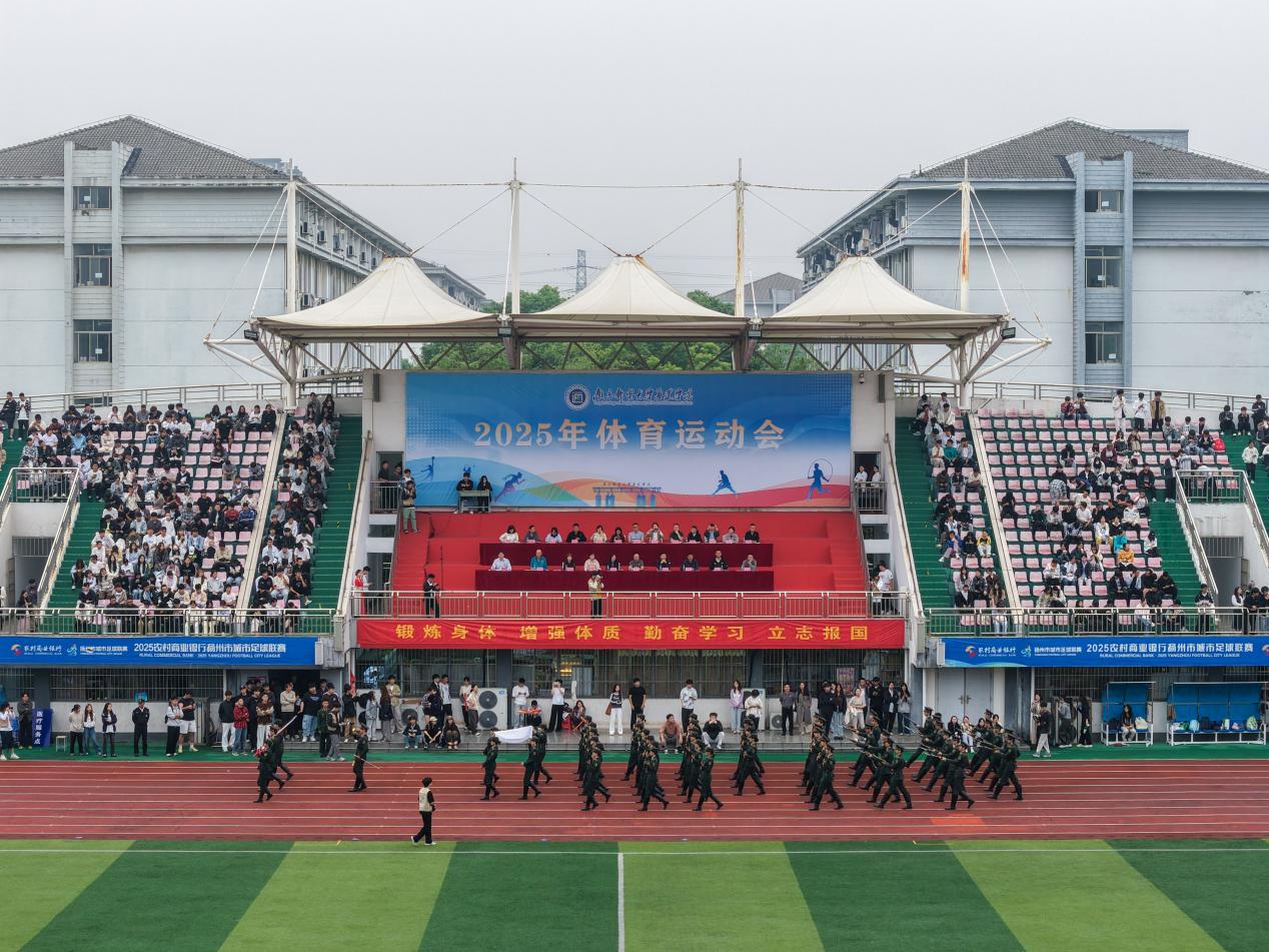 运动会在激昂的《运动员进行曲》中正式拉开帷幕。国旗院旗护卫队步伐铿锵,彩旗方阵意气风发,紧随其后的是各二级学院运动员方阵依次登场,成为场上最亮丽的风景线。他们迈着整齐划一的步伐,高喊着独具特色的口号,依次通过主席台接受检阅。每一个方阵都带着独特的创意与饱满的热情,展现出各学院的专业特色与精神风貌。