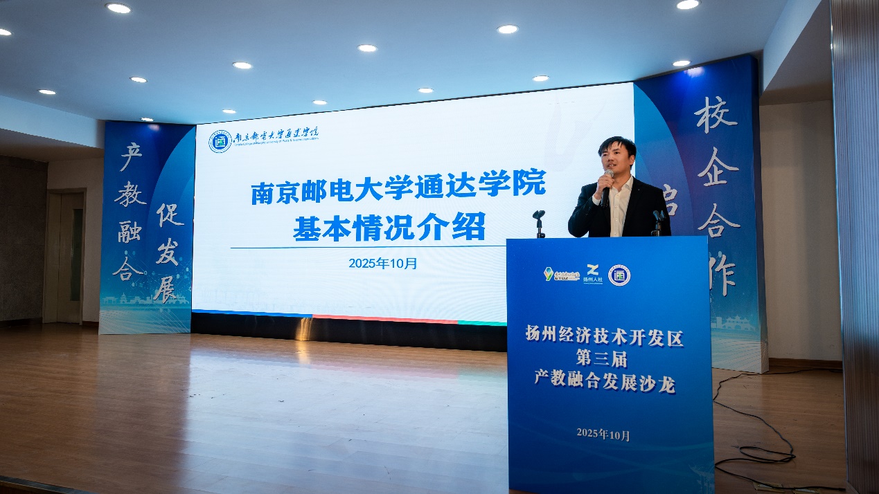 赵海涛在致辞中简要介绍了扬州经开区产业发展情况,他期盼通过搭建的沙龙平台,破解“企业求才若渴、院校育人有惑”的痛点,并就产教融合要义对院校、企业、政府部门提出了新的期盼。