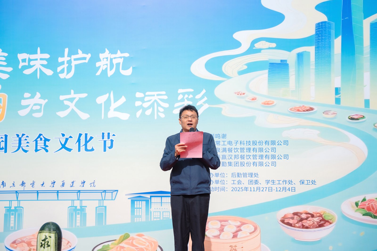 11月27日中午,学院第四届校园美食文化节如期开幕,常务副院长杨立军、副院长张伟、纪委书记宋健康出席活动。千余名师生共同参加。