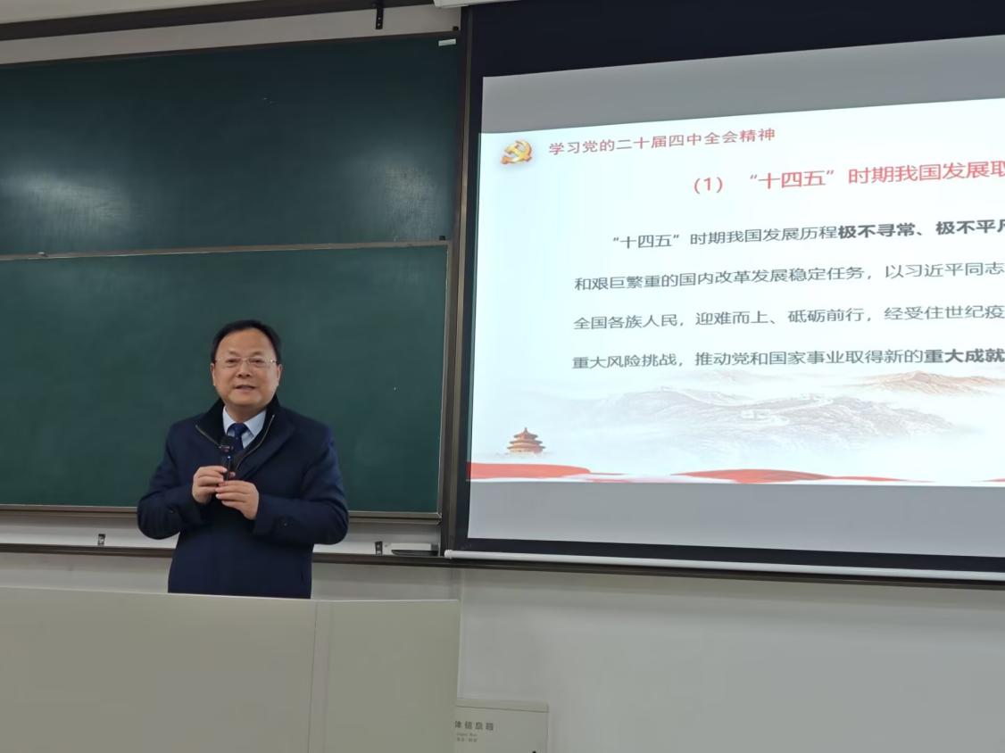 讲座中,林教授从全会召开的时代背景切入,指出其是我国在关键时期召开的重要会议,核心聚焦 “十五五” 规划制定,审议通过的相关建议为未来五年发展做好顶层设计;接着围绕全会精神学习,阐释 “为何学” 与 “怎么学”,强调学习是凝聚共识、激发活力的核心举措,提出 “全面系统学、融会贯通学、联系实际学” 的要求,叮嘱同学们重点理解多方面内容。讲座现场学习氛围浓厚热烈,同学们以饱满的热情投入全程,展现出青年学子勤学善思、心系家国的精神风貌,现场不时响起阵阵掌声,传递着同学们对国家发展蓝图的由衷赞许与坚定信心。
