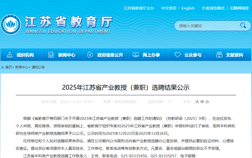 近日,江苏省2025年度本科类产业教授(兼职)选聘名单正式发布。经学院推荐申报,来自中国移动通信集团江苏有限公司扬州分公司的王新宽成功获选,成为学院产业教授队伍的新成员。