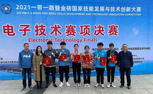新闻网讯2021一带一路暨金砖国家技能大赛电子技术赛项国内赛决赛于10月11日—13日在湖北枝江职教中心举行,来自全国各类职业院校43支队伍参加比赛。买球买球官方网站组织参赛队参加该赛项,经过连续5个小时的激烈角逐,应用电子技术专业裴贤、周紫欣、卢存勇荣获高职组团体一等奖,付欢、李宁峰、刘勇军荣获高职组团体三等奖。