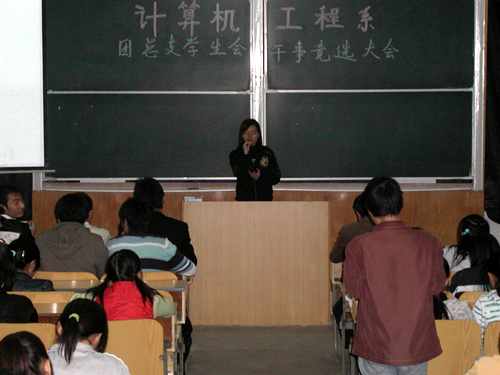 本网讯 (通讯员 仵文启 报道)10月18日晚,计算机工程系在综合楼601教室举行2007年学生会团总支干事竞聘大会。计算机工程系主任夏德洲、副主任王明东、副书记莫德华、辅导员龚国均、杨胜利与会。系团总支、学生会各部门成员及竞聘学生参加了本次活动。