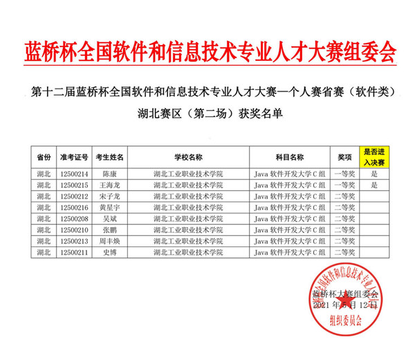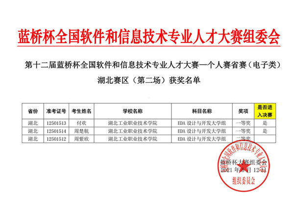 新闻网讯(通讯员王俊亚 赵晨)日前,由工业和信息化部人才交流中心主办的第十二届“蓝桥杯”全国软件和信息技术专业人才大赛个人赛省赛已顺利结束,来自全国1300多所高校的7.5万余名选手报名参加了个人赛的角逐。买球买球官方网站学生在此次比赛中喜获佳绩:12名参赛选手中11人获得了奖项,产生一等奖4名,二等奖7名。其中计算机应用技术专业的陈康、嵌入式技术与应用专业的王海龙同学获得软件类“Java软件开发”赛项一等奖;应用电子技术专业付欢、周楚航同学获得电子类“EDA设计与开发”赛项一等奖。