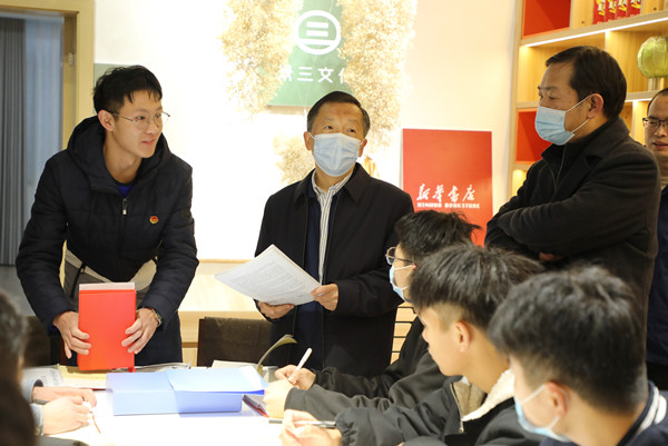 蔡静峰一行实地走访察看了买球倍阅书店、北区食堂、心理健康教育与咨询中心、艺术设计学院(绿松石产业学院)、大学生创新创业基地等场所,深入了解买球思政文化育人阵地建设、心理育人工作、党史学习教育和“我为师生办实事”项目以及学校服务地方经济社会发展等情况。