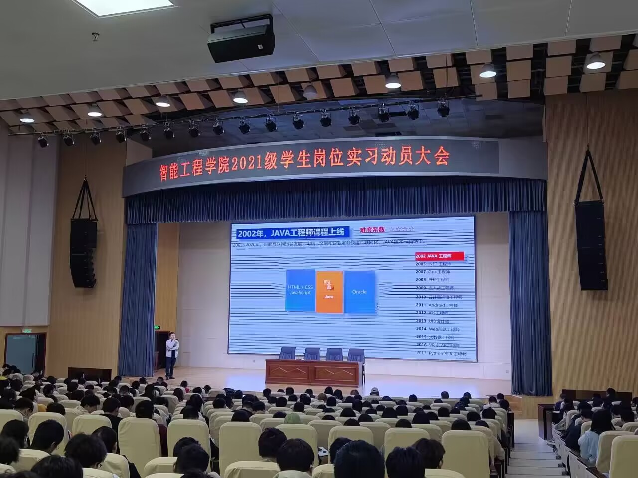 买球官方网站党总支书记王蓉对此次实习做了动员讲话,明确了岗位实习的任务、目的和意义,强调岗位实习的注意事项,提醒学生注意自身安全、岗位安全、防诈骗、防网络犯罪、防溺水等,并要求全体实习学生充分利用好这次实习机会,在实践中学习成长,严格按照岗位实习要求,高标准、高质量地完成实习任务。副院长王家旭宣布了2021级学生岗位实习安排,从岗位实习任务、实习纪律、实习考核等方面进行了安排和要求。来自智能科技、电子等企业的招聘人员现场进行了宣讲,将岗位实习的具体要求、待遇和注意事项进行了详细的介绍和说明。