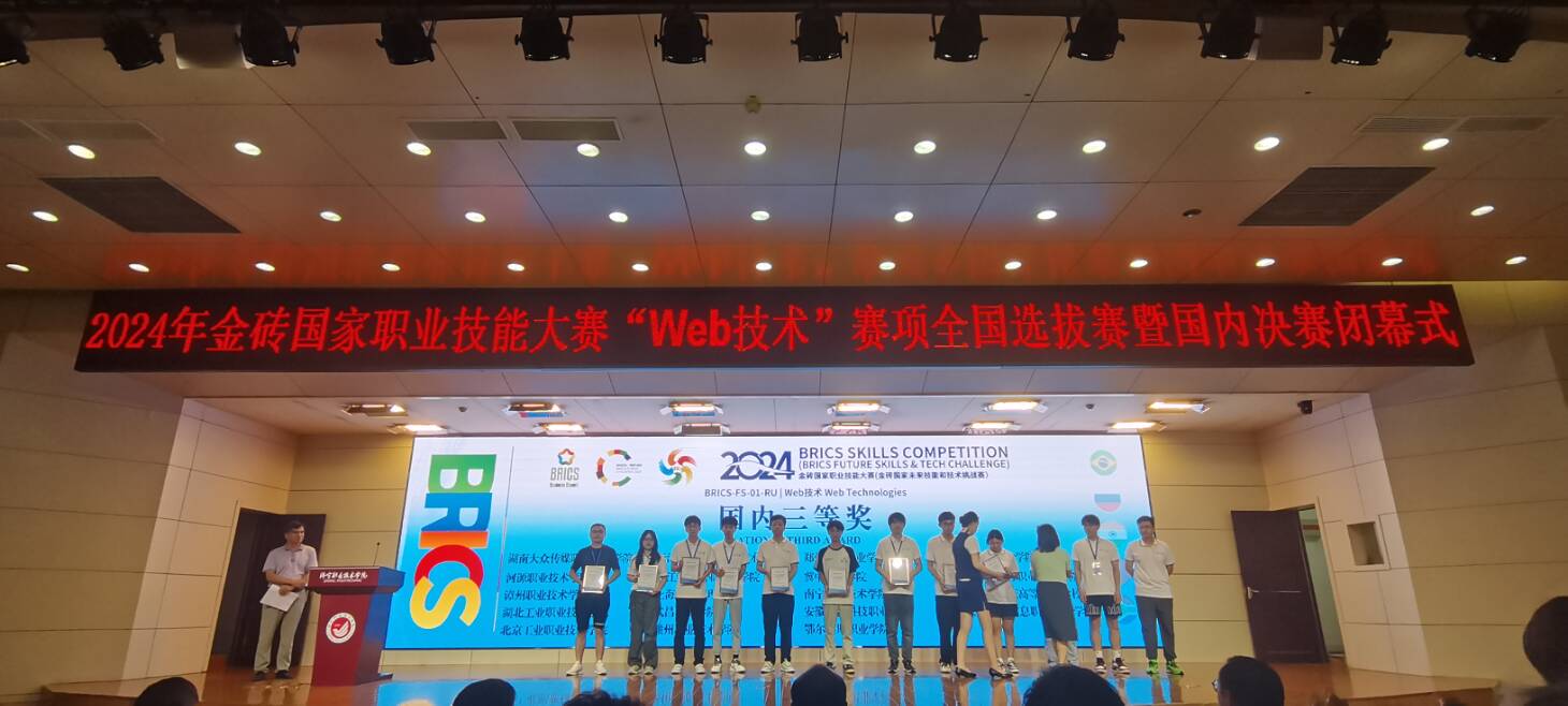 新闻网讯(通讯员 田圻) 7月22日—23日,2024金砖国家职业技能大赛Web技术赛项全国选拔赛暨国内决赛在山东举办。买球买球官方网站学生陈亭妤、金宏阳在田圻老师的精心指导下刻苦训练、沉着应战,在区域选拔赛中分别荣获一等奖、三等奖。陈亭妤同学成功晋级国内决赛,最终在来自全国28个省、市、自治区的49支参赛队伍的竞技角逐中脱颖而出,荣获三等奖。